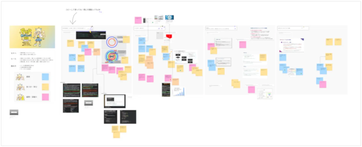 - 適当に付箋を拾い、書いた人の話を聞きつつわいわい話す